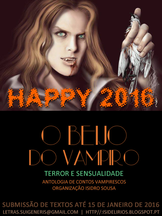 Eis os 34 cartazes promocionais da antologia «O Beijo do Vampiro», difundidos diariamente nas redes sociais durante o mês de Dezembro. Recordo que este projecto literário é independente, teve início no passado dia 27 de Novembro e o prazo para submissão de textos termina no dia 15 de Janeiro. Se ainda não enviou o seu texto, tem duas semanas (tempo suficiente) para fazê-lo. Não deixe de participar nesta antologia de contos vampirescos! Seja um dos seus vários autores...